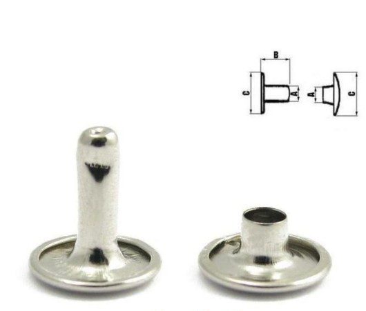 Die zweiteilige Sattelniete mit Biss ist eine besonders funktionale Niete, die durch ihre spezielle Kerbe in der Nähe der Stielspitze den Nietvorgang erheblich beschleunigt. Diese durchdachte Konstruktion sorgt nicht nur für eine schnelle und einfache Anwendung, sondern erhöht auch die Festigkeit der Verbindung, was eine stabile und langlebige Befestigung garantiert.
